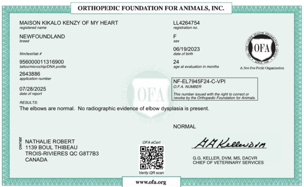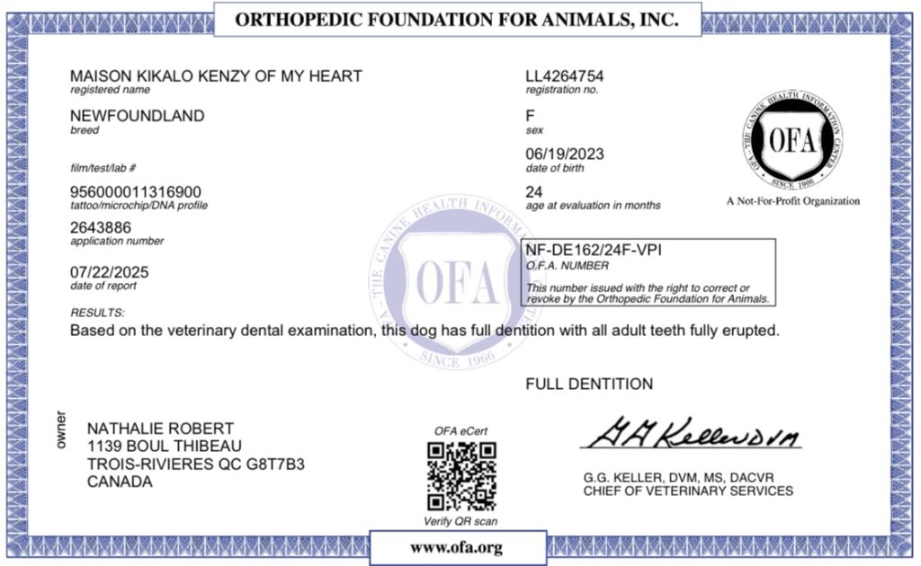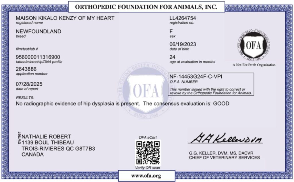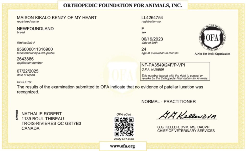 Elle aime se coller sur les humains. Elle adore écouter la télévision quand il y a des animaux dans l’émission. Kenzy est une fille très agile et clown dans ses moments de folie.